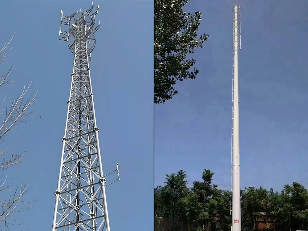 Monopole Towers: ດ້ວຍຮ່າງກາຍຂອງ towers ເປັນຮູບທໍ່ກົມ, towers ເຫຼົ່ານີ້ແມ່ນມີລັກສະນະຕ້ານລົມຕ່ໍາ, ຮູບລັກສະນະງ່າຍດາຍແລະສະອາດ, ແລະຮອຍຕີນຂະຫນາດນ້ອຍ. ພວກມັນຖືກນໍາໃຊ້ທົ່ວໄປໃນເຂດຕົວເມືອງແລະເຂດ scenic ບ່ອນທີ່ການພິຈາລະນາກ່ຽວກັບຄວາມງາມແມ່ນມີຄວາມສໍາຄັນ.